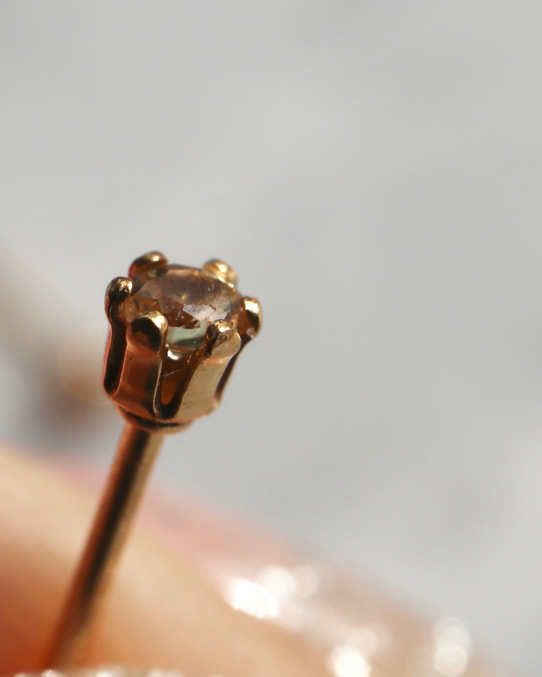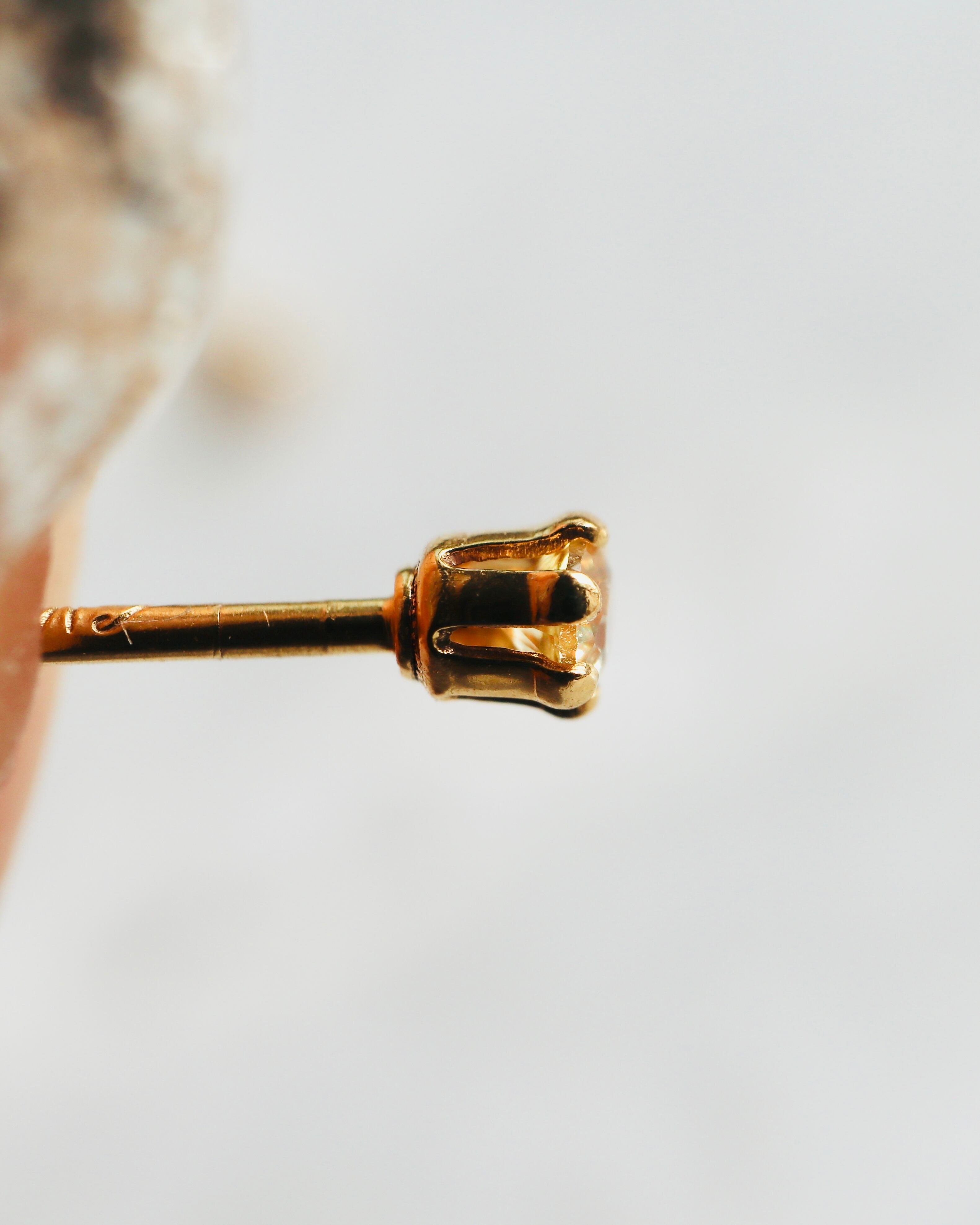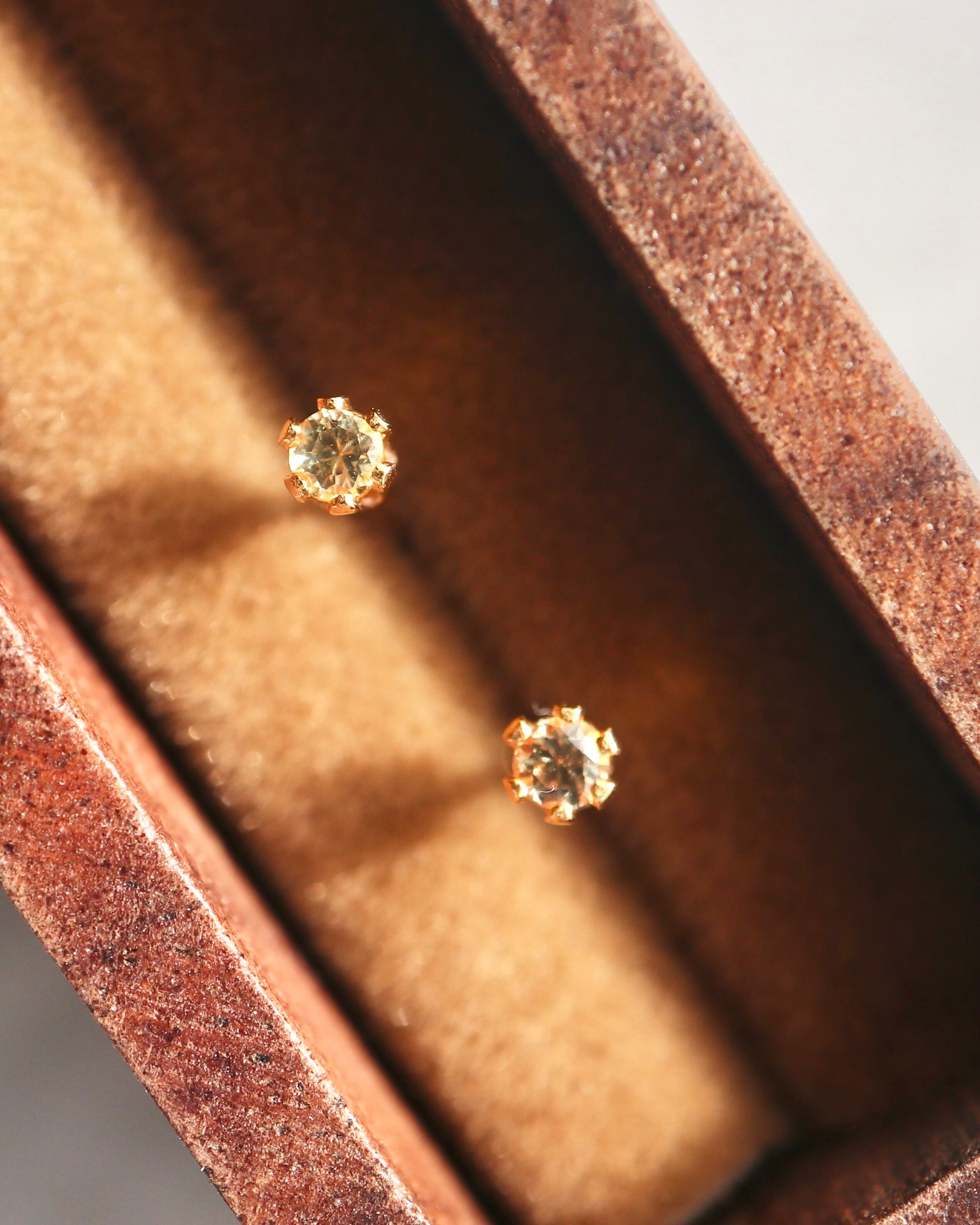 小さくて艶が良いイエローサファイアを1ピース埋め込んだポストピアスです。
