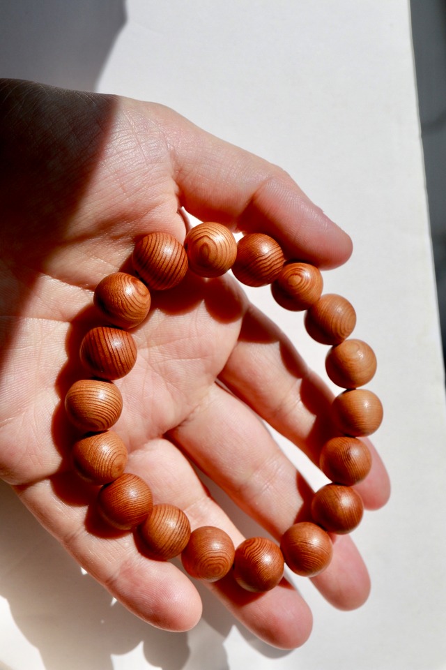 屋久杉土埋木のブレスレットは、とても深い香りがして、艶感のある光沢があるのが特徴です。